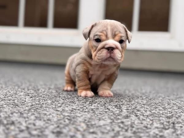 Meet Fletcher, a striking lilac fawn English Bulldog puppy with a soft, velvety coat and the most charming little face. His coat blends creamy lilac tones with warm tan highlights, giving him a rare and beautiful marbled look. With his deep wrinkles, compact build, and soulful eyes, Fletcher is the perfect mix of strength and sweetness.