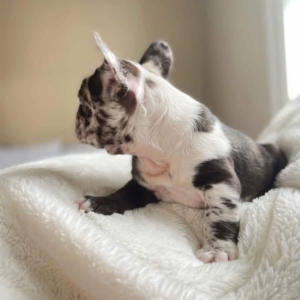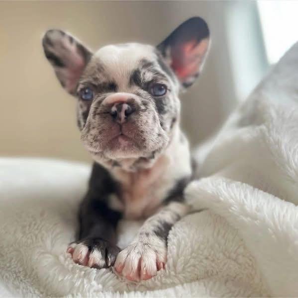 Meet Nova, a stunning blue merle French Bulldog with captivating eyes and a personality that shines as bright as her name. She’s playful, curious, and full of charm — always ready to explore her surroundings or curl up for a cozy nap. Nova’s gentle and affectionate nature makes her the perfect companion for families, couples, or anyone looking for a loving little friend.